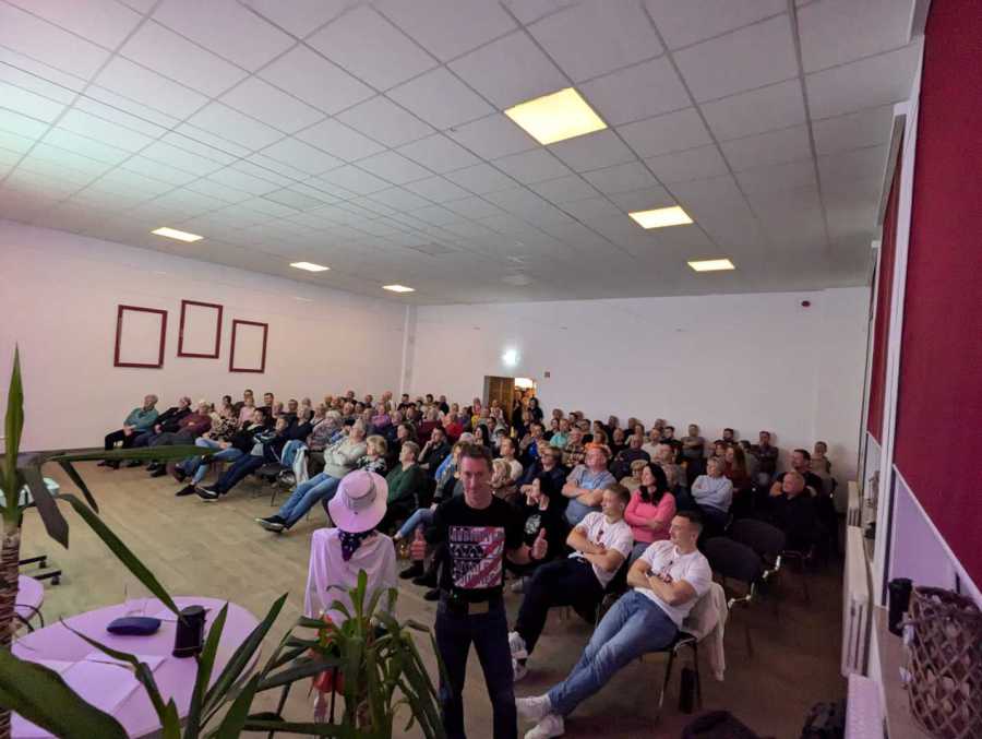Ich wurde von der SG Finne Billroda gefragt, ob ich am Vorabend des Finnelaufs einen Vortrag über den Badwater halten könnte. Da konnte ich natürlich nicht „Nein“ sagen, obwohl ich die Rolle in der ersten Reihe eher meide. Zu der allgemeinen Anspannung kam noch hinzu, dass die Techniker für Bild und Ton geradezu ins Schwärmen gerieten, als sie von den Vorträgen vergangener Jahre berichteten und dass ein gewisser Jens Weißfolg das Zelt zum Toben brachte. Während die Messlatte immer größer wurde, wurde ich immer kleiner. Solche Sachen mache ich ja schließlich nicht jeden Tag. Aber die zwei Techniker hatten meinen Ehrgeiz geweckt und nach reichlich 2 Stunden Vortrag waren die rund 120 Anwesenden begeistert und von meinen Schultern fiel tonnenweise Last ab.