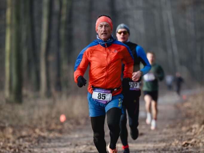 Was war das jetzt? Ein kurzer Blick über die Schulter und meine Augen machten einen alten verbissenen Mitmenschen aus. Wenn das jetzt das neue Wettkampffeeling sein soll, darauf kann ich verzichten. Da geht es in den Bergen doch deutlich entspannter zu. Und zu meiner Überraschung war ich dieses Mal auch tiefenentspannt. Ein kurzes Lächeln für den alten verbissenen Mitmenschen und schon viel 9:30 Uhr der Startschuss. Schnell, aber nicht Anschlag, so war der Plan, wie ich die Sache angehen wollte. Schließlich sollte am Abend zur Silvesterfeier das Bier noch schmecken. Nach etwas mehr als einem Kilometer galt es, die ersten Höhenmeter zu bewältigen. Zwei Kilometer mit leichter Steigung lagen vor mir und wenn ich etwas kann, dann bergauf. So schob sich das Teilnehmerfeld recht schnell auseinander, und als der erste „Gipfel“ erreicht wurde, hämmerte mein Puls doch schon ordentlich. Auch aus diesem Grund, da ich dieses Jahr einen Mitstreiter an meiner Seite hatte. Doch was heißt Seite. Bergauf bestimmte ich das Tempo und als es wieder abwärts ging, zog er wieder vorbei und ich versuchte, mich hinten dran zu hängen. Nur so kann ich mir Kilometer 7 erklären, den ich doch tatsächlich in 3:21 Minuten gelaufen bin. Es ging zwar bergab, aber trotzdem hatte ich solche Zeiten nicht mehr für möglich gehalten. Da drauf lässt sich aufbauen, selbst in der AK 50. So ging das mit mir und Sebastian Paulick, so hieß mein Mitstreiter, Kilometer um Kilometer weiter. Als es nach 13 Kilometern wieder für 3 Kilometer bergauf ging, war ich am Anschlag. Aber Sch… drauf, das Bier würde vielleicht doch noch schmecken. Ich war jetzt wieder voll im Wettkampfmodus und wollte die Sache sauber zu Ende bringen. Ich biss mich nochmal den Berg hoch und Sebastian blieb dran.